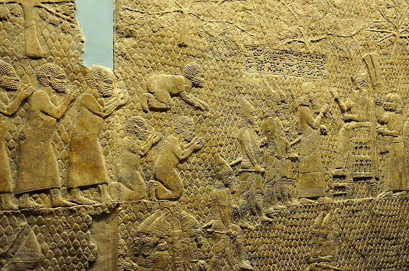 As I was reading Jose Saramago’s Blindness, I was reminded of the Lachish Reliefs discovered in Ninevah, chronicling the Assyrian King Sennacharib’s 701 BCE conquest of Lachish, a fortified city in the kingdom of Judah. The Lachish Reliefs depict the siege of Lachish, the torture of prisoners, the dead bodies of enemy soldiers impaled on spears, the captives brought before the victorious ruler, and the fleeing refugees.